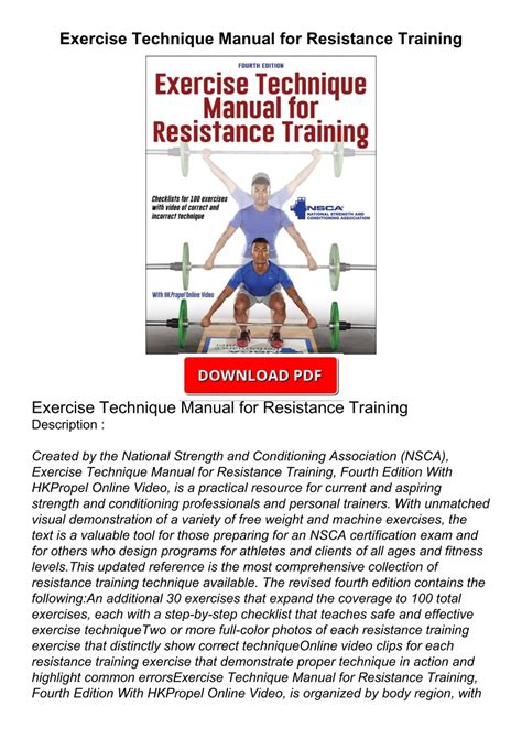 Read pdf exercise technique manual for resistance training 2nd Epub By Click Button. pdf exercise technique manual for resistance training 2nd it’s easy to recommend a new book category such as Novel, journal, comic, magazin, ect. You see it and you just know that the designer is also an author and understands the challenges involved with having a good book. You can easy klick for detailing book and you can read it online, even you can download it